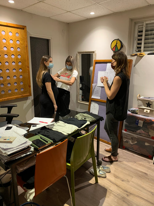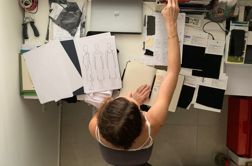 We invite you to take a sneak peek at our product development: from ideation and sketching, fabric and color research, pattern making and size grading, fitting and perfecting the silhouettes, to finally cutting and sewing the finished product. We tried to document as much as we could to give you a glimpse into the year long creative journey that launched The Line 9.